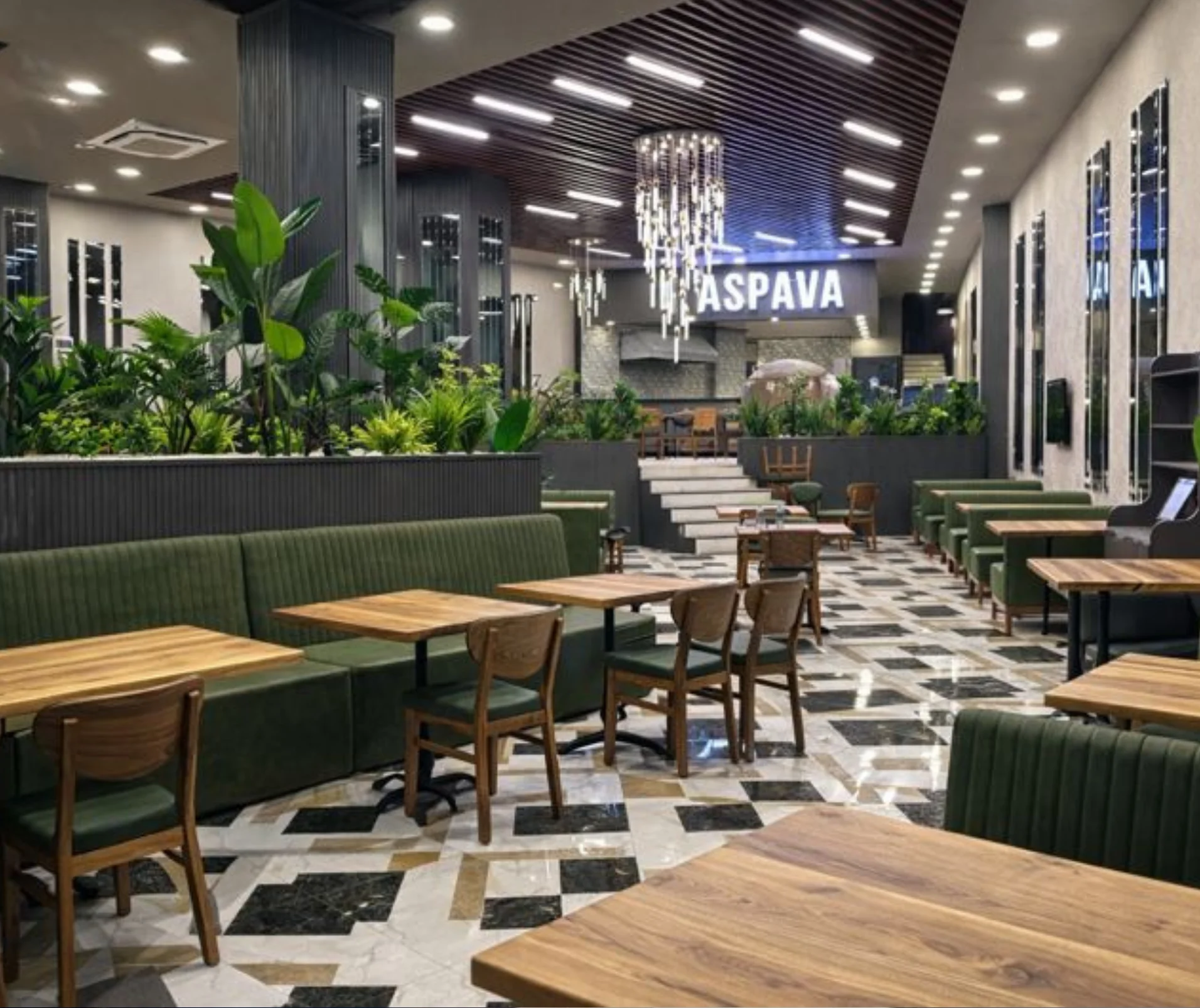 Beytepe 1923 AVM’de yer alan Aspava şubesi için iç mimari proje sürecini, mekânın mevcut altyapısı ve kullanım senaryolarını analiz ederek planladık. Müşteri sirkülasyonu ve servis hattını dikkate alan fonksiyonel bir yerleşim oluşturduk. Doğal dokular ve sıcak tonlarla markanın samimi atmosferini korurken, modern restoran kimliğini destekleyen uygulamalar gerçekleştirdik. Proje, planlanan süre içinde eksiksiz şekilde tamamlandı.